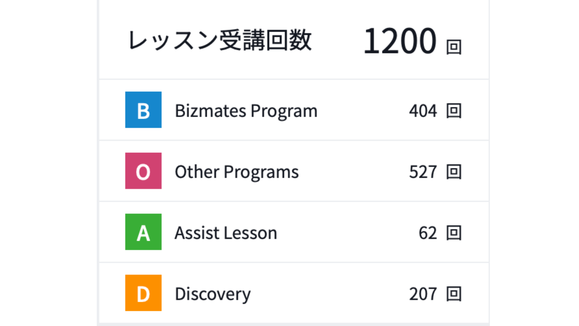だったので、レッスンを1200回受講するには、「約3年10ヶ月」の期間がかかったことになります。