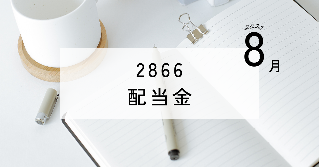 2024年8月に2866から受け取った配当金はこちらの記事をどうぞ。